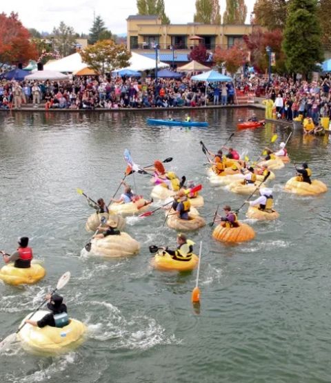 The 2025 West Coast Giant Pumpkin Regatta in Tualatin, Oregon, has been held every year since 2004. The main event is the pumpkin boat race with competitors paddling in giant, hollowed-out pumpkins. The festival also includes a giant pumpkin weigh-off, a costume contest, and the annual Regatta Run.