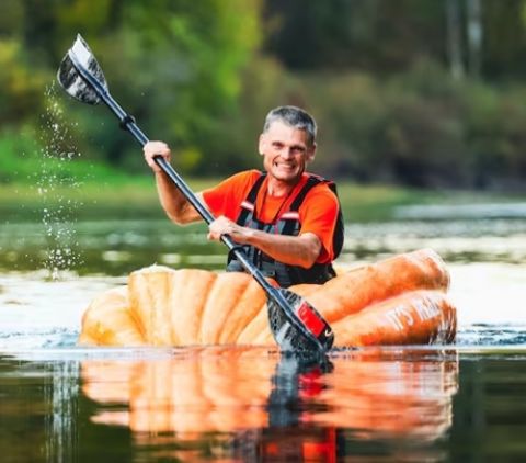 winners in his 936-pound pumpkin boat. Also, this year on October 13th, Gary paddled 45.67 miles along the Columbia River in Washington, USA, to claim the world record for the longest journey by pumpkin boat (paddling).
